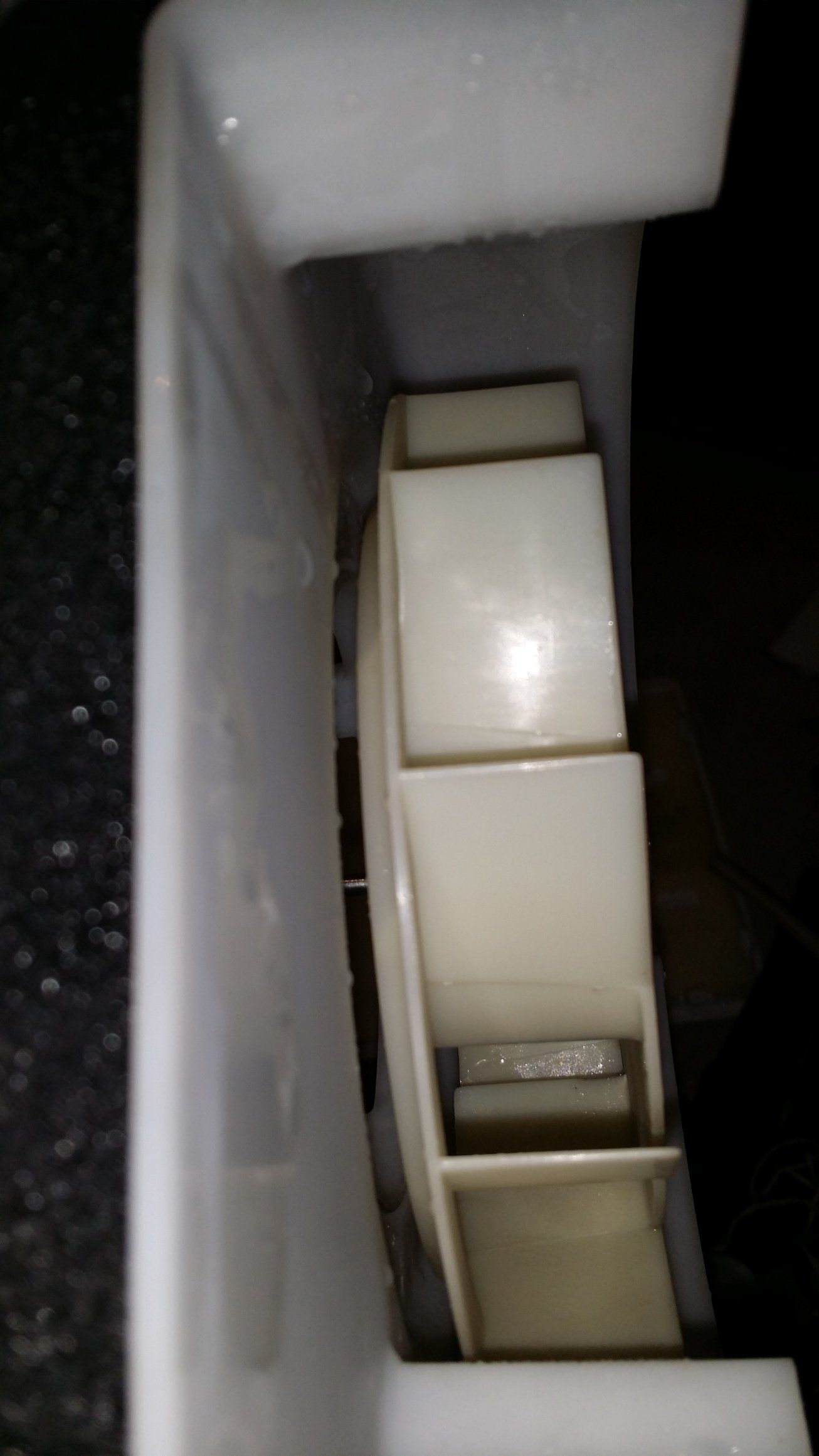 I cleared out a build-up of ice in the fan and ducting, and ran the appliance. It was completely silent now. I had assumed that the problem had now been resolved, but I asked the customer to let me know if the noise returned. The next day, I received a call saying that the noise had in fact returned, although not so noisy since my visit.