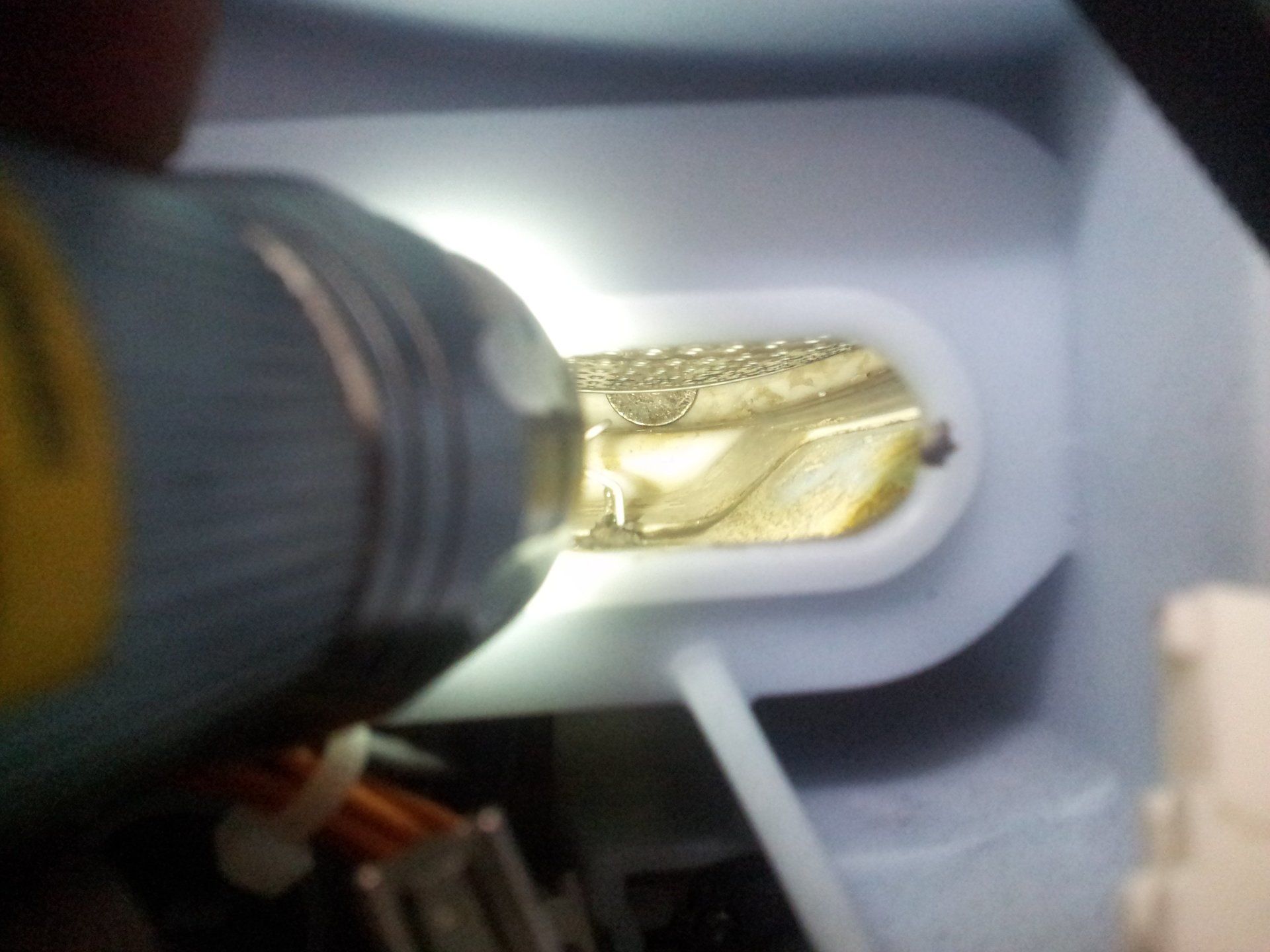 On moving the drum, I immediately heard something rattling. I went round the back, removed the rear cover and heating element and shone my torch in.