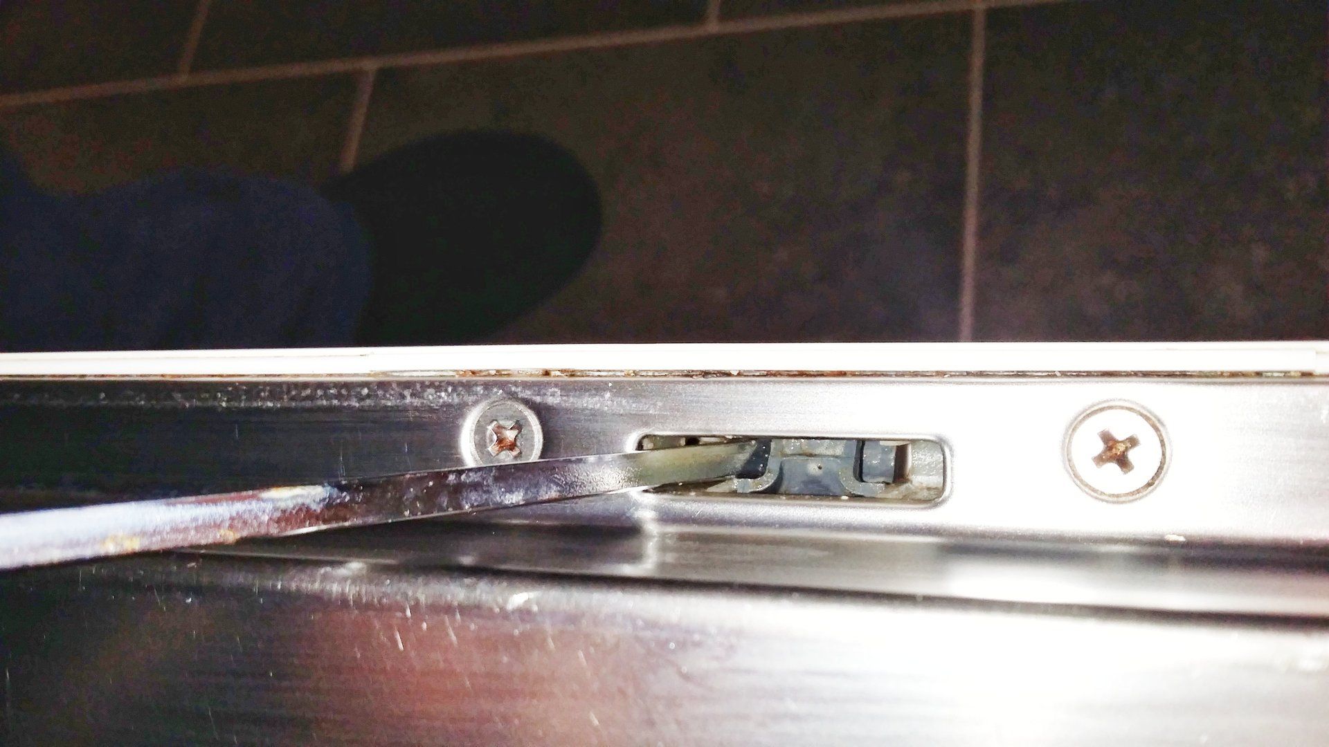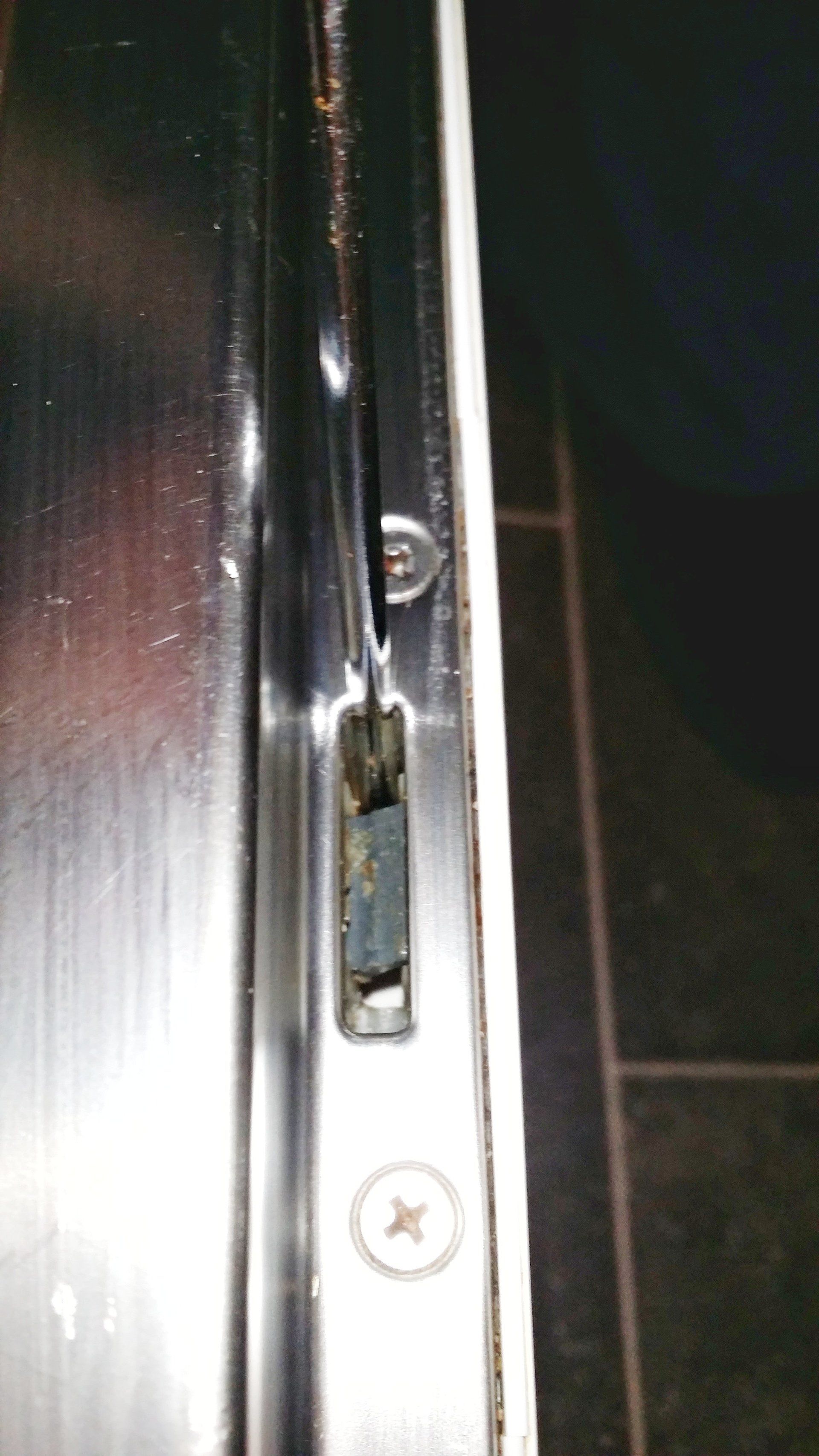 Having seen this fault many times before, I was able to advise the customer that the likely problem was that the switch inside the door had become latched, causing the dishwasher to be in 'door closed' mode. This is usually when the door latch springs round into the closed position which then tells the dishwasher that the door is closed when it isn't. The latch springs forward and when you try to close the door, the latch hits the metal door bar that goes into the lock opening so it won't close and the dishwasher can actually then run with the door open. Not a good idea!